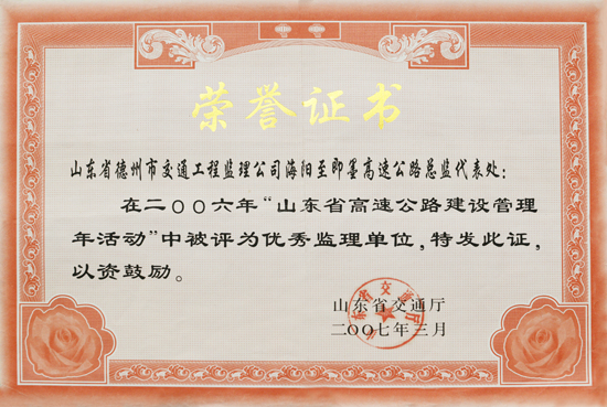 2007年省交通廳“優(yōu)秀監(jiān)理單位”