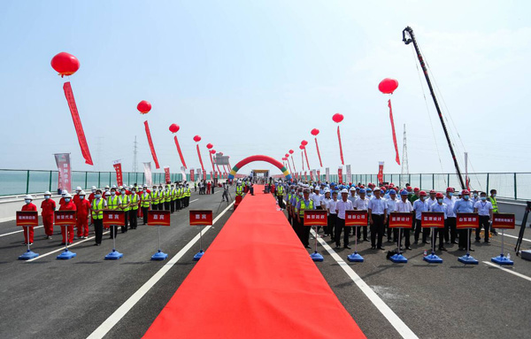 經(jīng)過近三年半的緊張工作,終于迎來了本項目最重要的時刻,2020年8月8月,項目公司中國葛洲壩集團股份有限公司組織各參建單位、省市有關(guān)單位領(lǐng)導(dǎo)成功召開了交工驗收大會,對本項目的執(zhí)行情況進行了全方位的驗收,并通過了交工驗收執(zhí)行報告。2020年8月10日上午10時23分,在本項目微山湖特大橋現(xiàn)場舉行了盛大的通車典禮,副省長凌文、交通運輸廳廳廳長江成、副廳長王其峰等省廳領(lǐng)導(dǎo)對本項目的工作給予的充分肯定,并宣布棗菏高速公路正式通車,現(xiàn)場響起了久久的掌聲和歡呼聲,那一刻所有人臉上洋溢著開心的笑容,見證了這一歷史時刻。